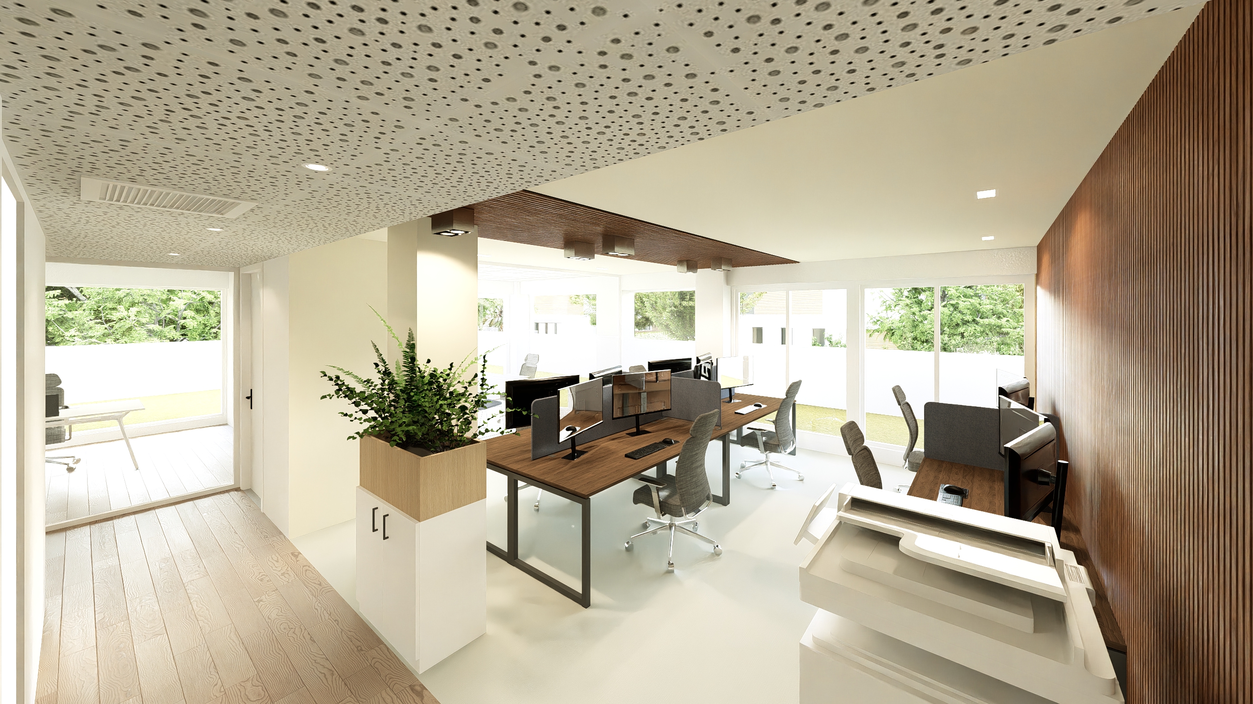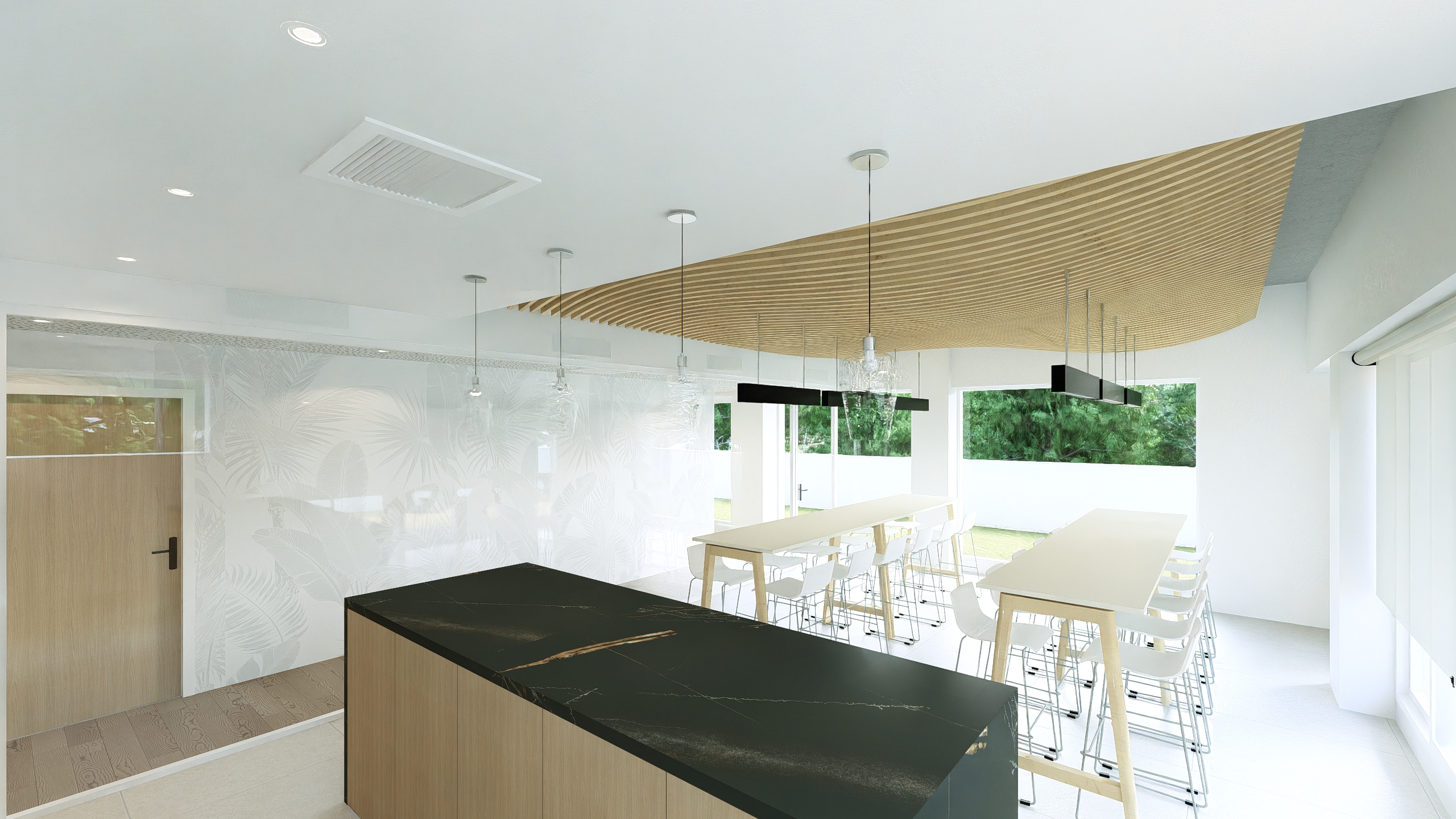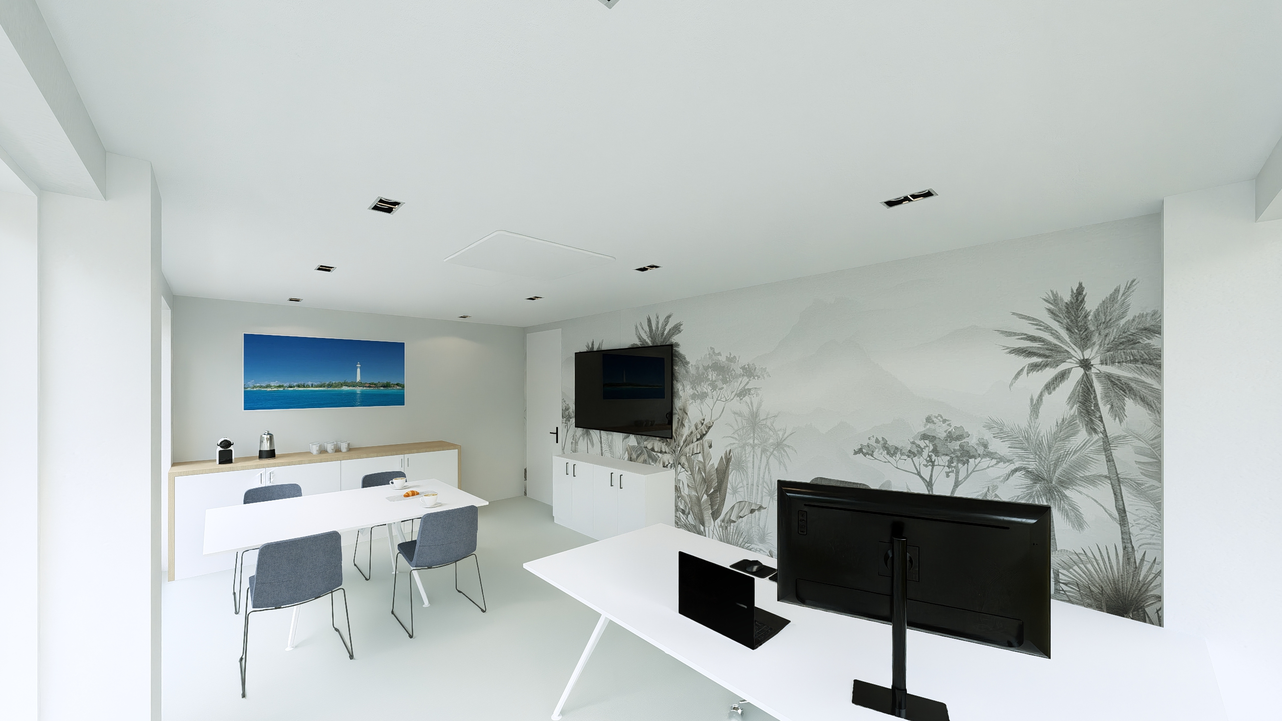 Aménagement complet des 650m² de bureaux du nouveau siège Mobil NC dans la résidence Aqualuna à l’Anse Vata